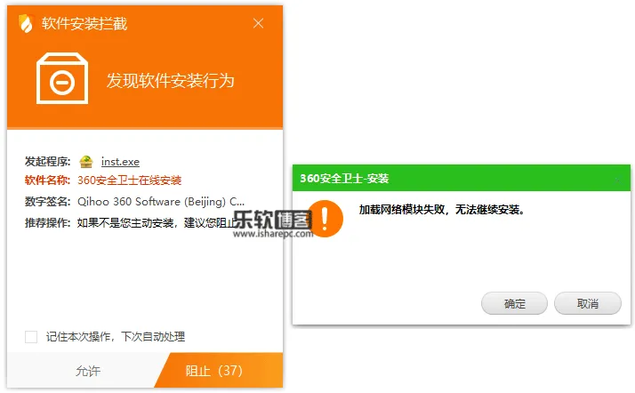 其他的一些比如360软件,本身安装时火绒会弹窗提醒一次,即便你同意安装,规则文件也会禁止网络下载而导致安装失败。