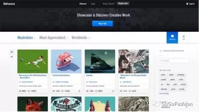 ✦ 简介:Behance 是展示和发现创意作品的领先在线平台。Behance 的管理团队每天都会从各个领域发掘出新作品上传到网站,这些领域包括设计、时尚、插图、摄影、美术、广告、排版、动画等。