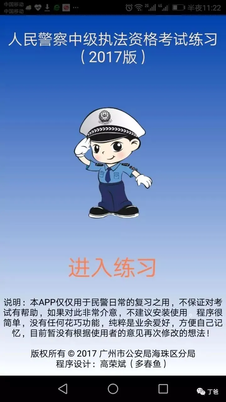 今天给马上要参加执法资格考试的警察蜀黍们推荐广州“多春鱼”高荣斌设计的考试练习题库软件。