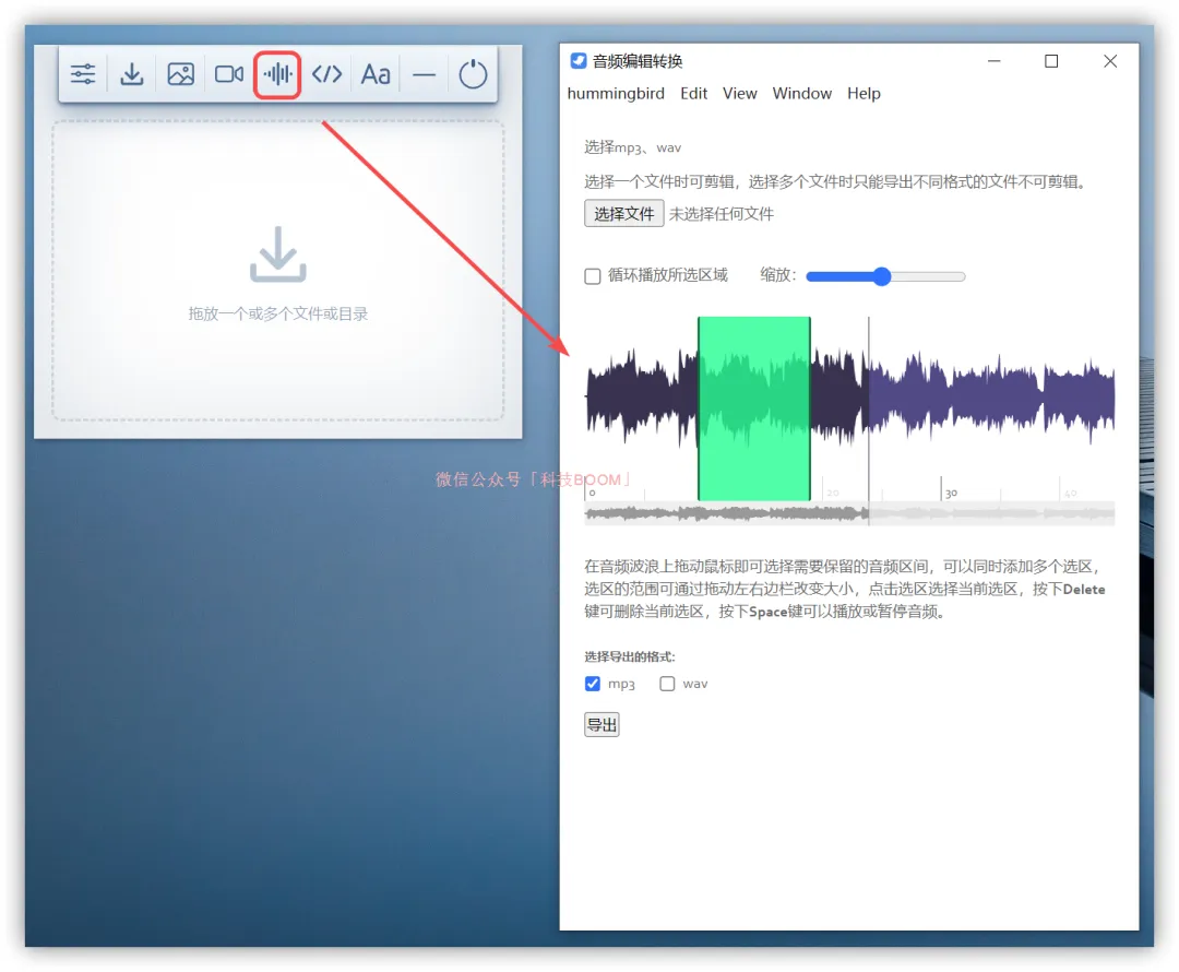 点击音频按钮可以用它裁剪音频文件、给音频文件转换格式: