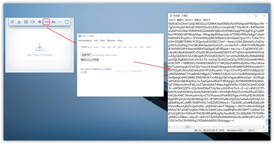 点击代码图标,可以获取各类文件的 Base64 编码,支持 PNG、Webp、JPEG、GIF、TIFF、AVIF、SVG、TTF、WOFF、WOFF2 等格式的文件: