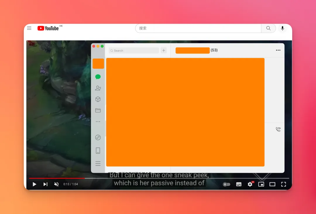 比如电脑实际画面是这样的,微信挡在视频上方。