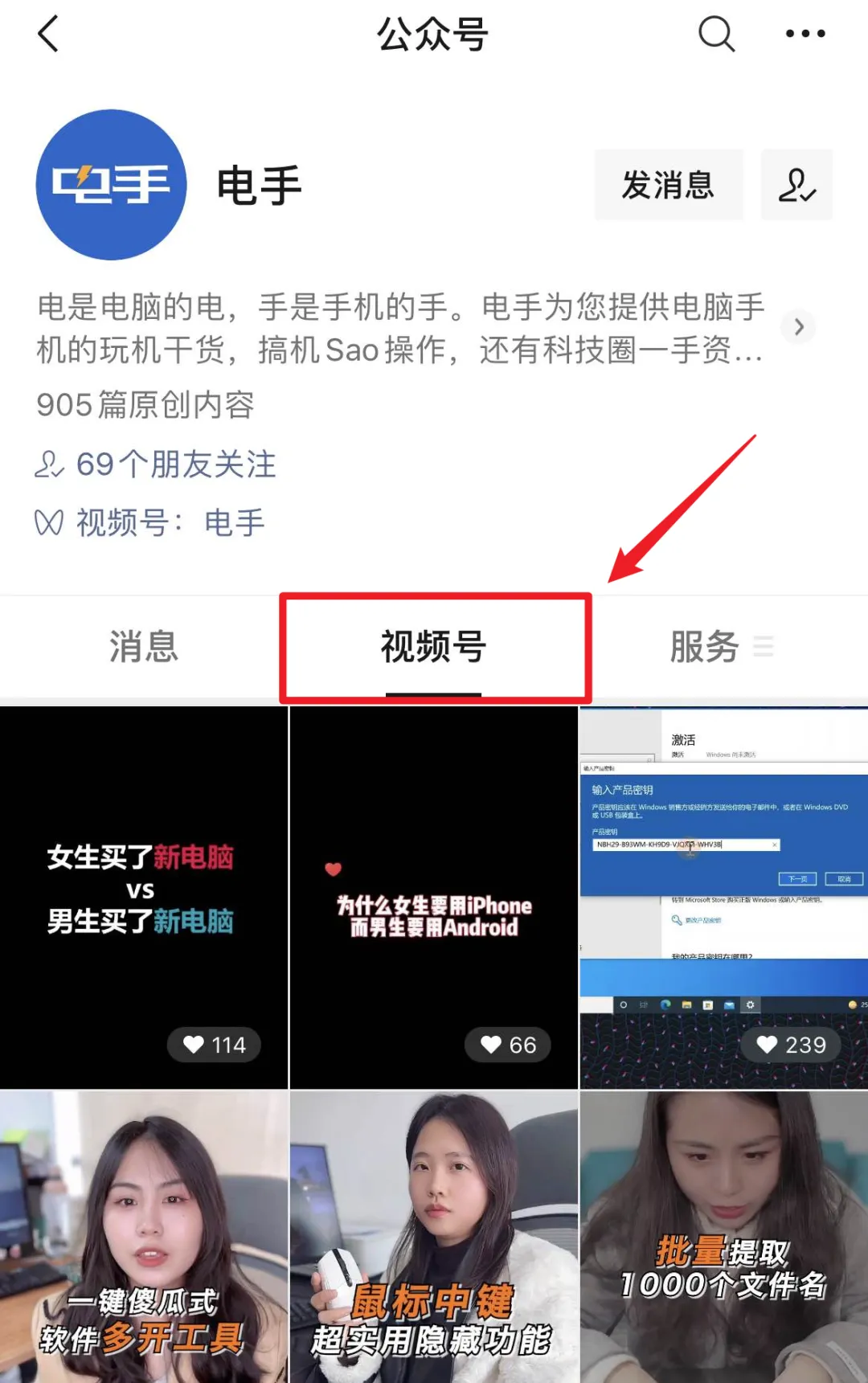 大伙儿可以直接点击电手公众号头像,然后打开视频号标签,就能看到,每日更新。