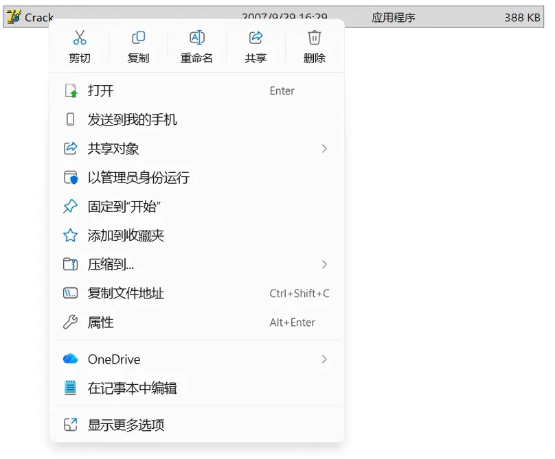 2.22,鼠标右击【Crack】选择【以管理员身份运行】。