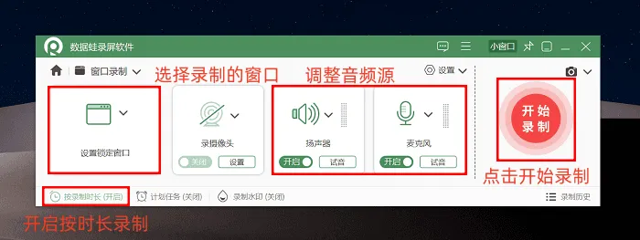 值得一提的是,即便拥有诸多功能优势,数据蛙录屏软件的操作依旧简单易懂,具体流程如下: