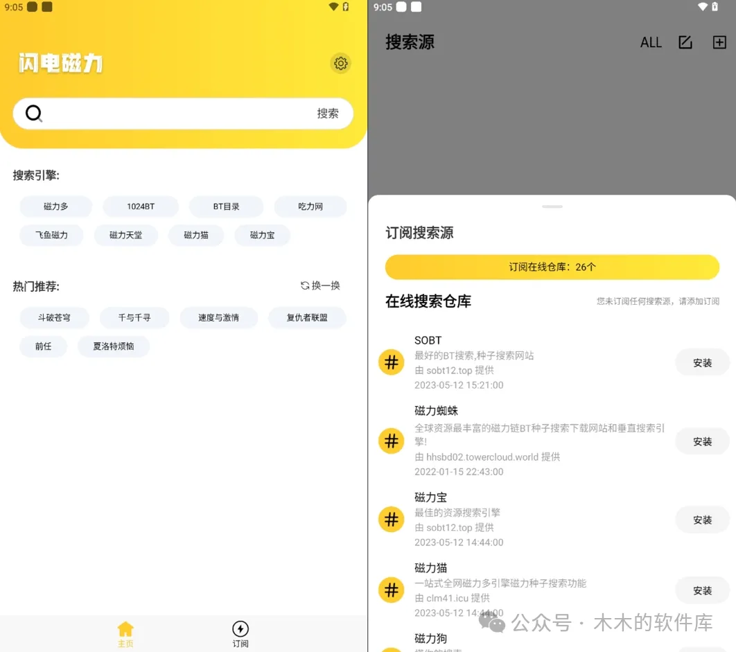 最近更新到1.1.7版本,搜索能力更强,各种视频、软件、电子书等磁力资源基本都能找到。内置26个在线仓库,一键添加就能用,这种设计对新手很友好,不用折腾就能直接开始搜索。