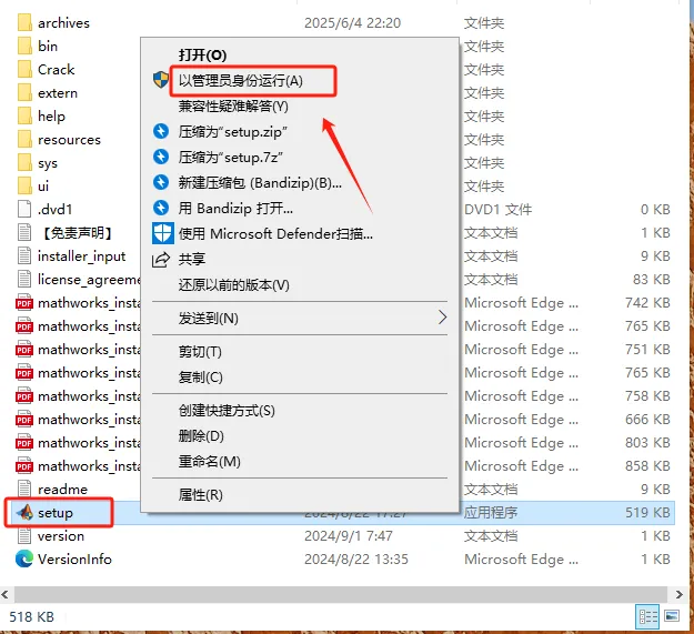第四步:打开装载或解压后的文件夹,找到setup安装程序,右击以管理员身份运行。