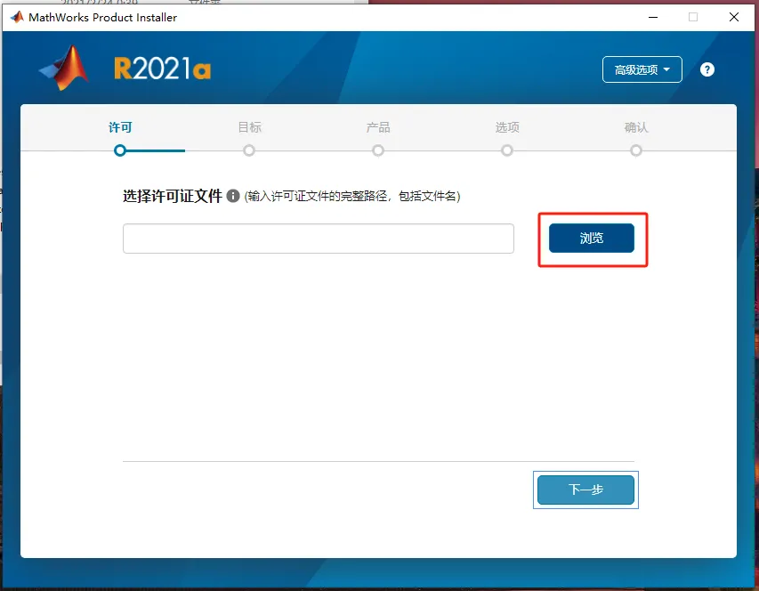 第五步:右上方点【高级选项】,然后选择【我有文件安装密钥】。