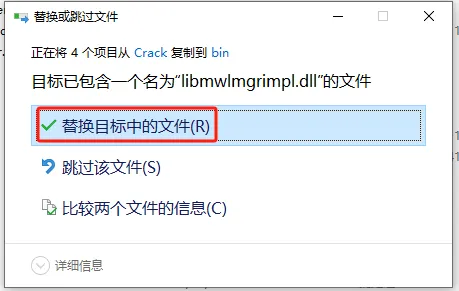 第二十步:选择【替换目标中的文件】。