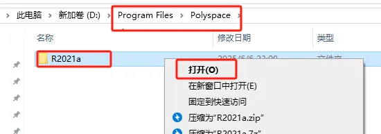 第十九步:后退到【Polyspace】文件夹,将刚刚复制的【R2021a】文件夹粘贴在此处。(此步很重要,请仔细阅读)