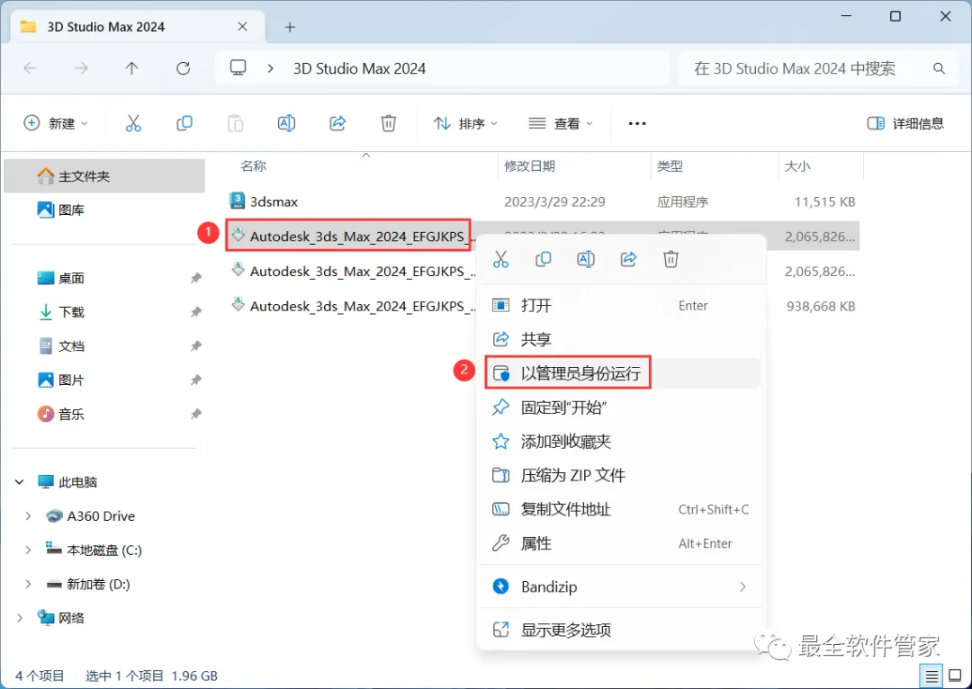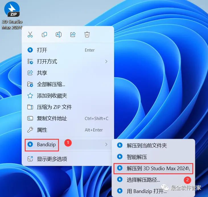 1、下载3D Studio Max 2024软件安装包到电脑上,右键选择【解压到3D Studio Max 2024\】