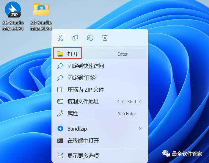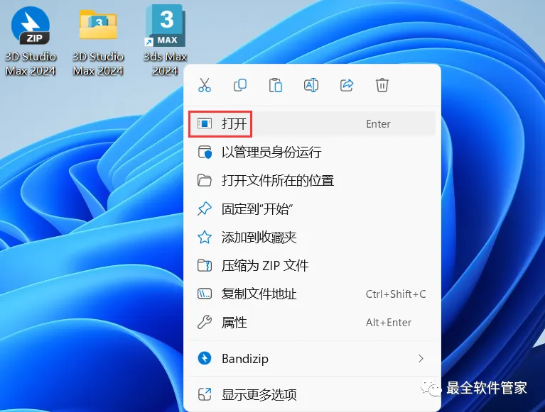 14、回到桌面,右键桌面上的【3ds Max 2024软件图标】,点击【打开】