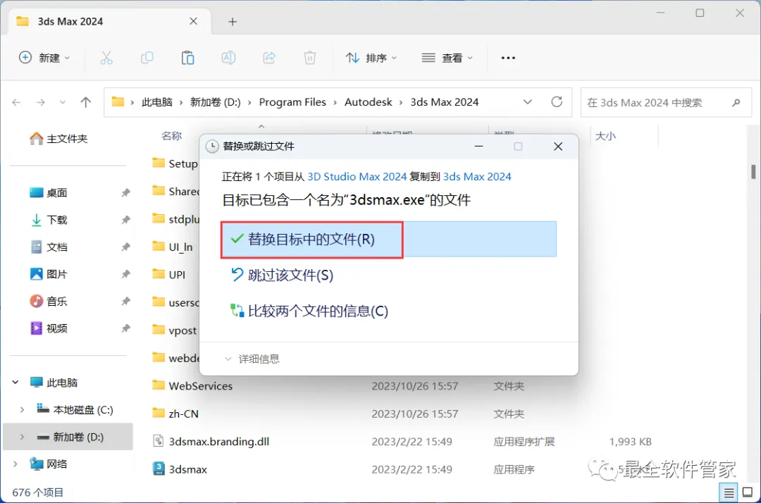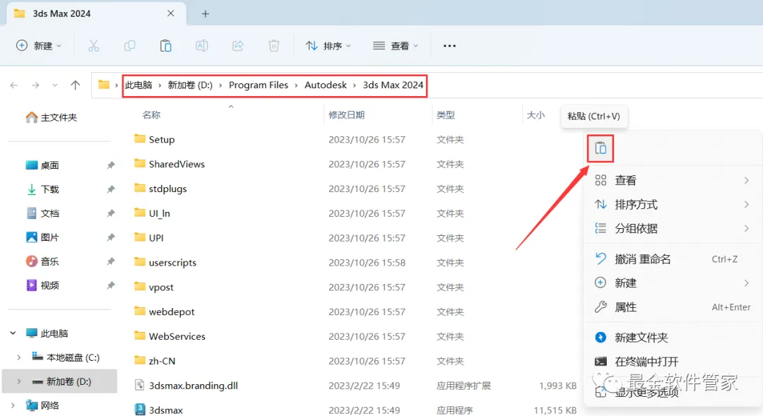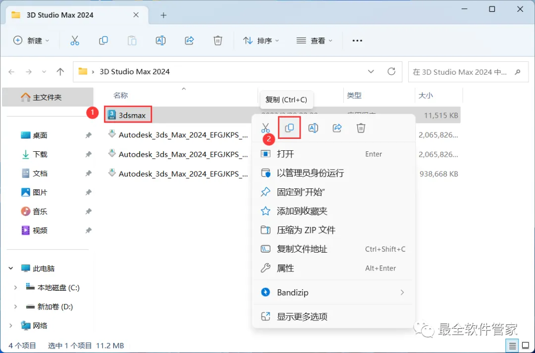 10、回到3D Studio Max 2024文件夹,找到【3dsmax】文件,右键点击【复制按钮】