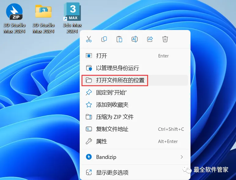 11、回到桌面,右键桌面上的【3ds Max 2024软件图标】,点击【打开文件所在的位置】