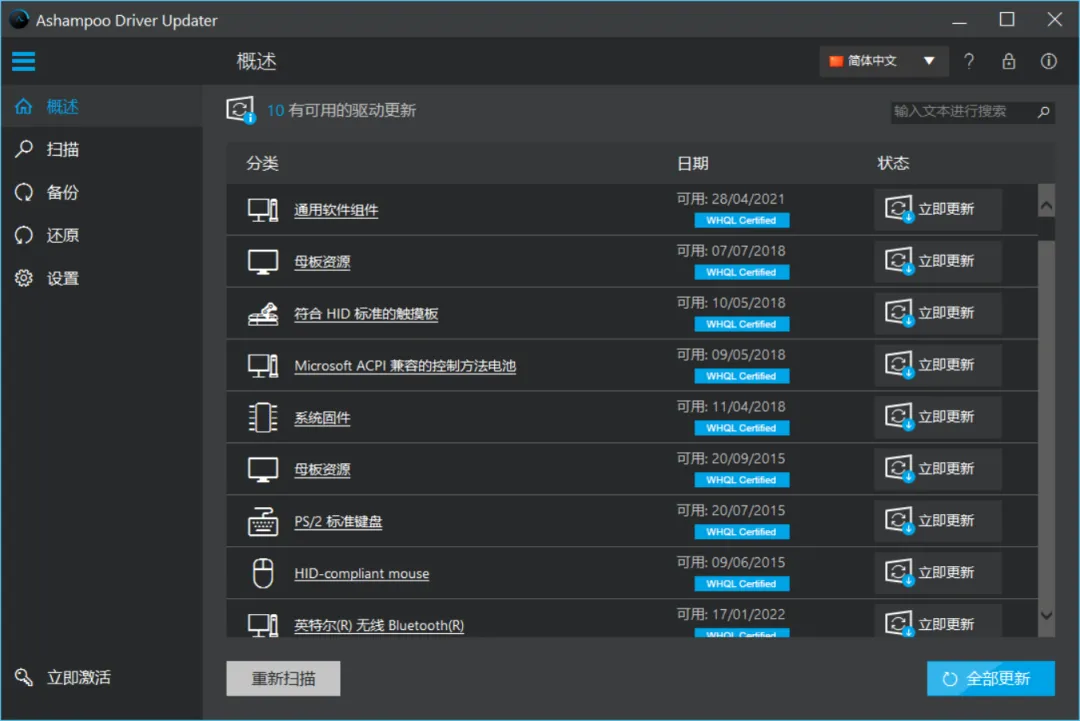 Driver Update 他是一款驱动安装电脑更新管理工具,它可以自动识别当前电脑所有硬件,包括显卡、声卡、网卡、以及打印机、键盘、蓝牙和鼠标,等。甚至包括系统相关组件,适合电脑重装系统后使用,关键是下载驱动不限速。