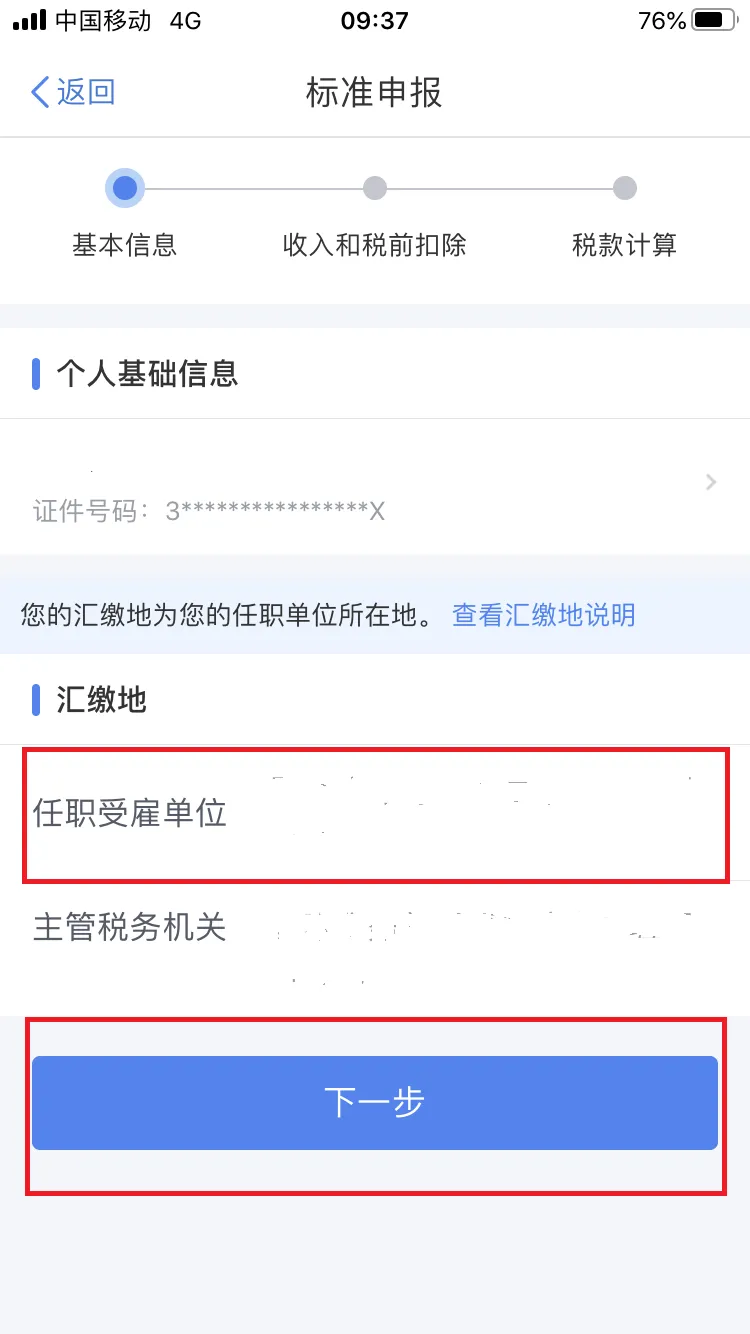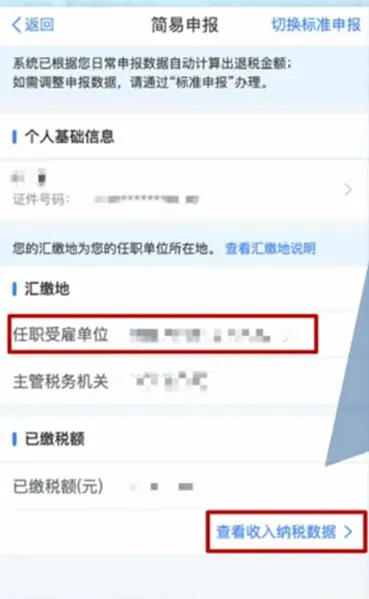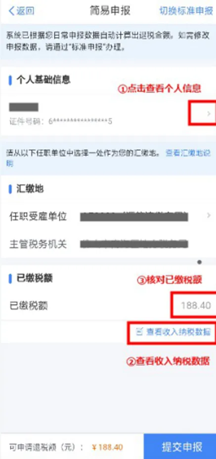 | 确认信息。对界面显示的个人基础信息、汇缴地、已缴税额进行查看、确认。 |