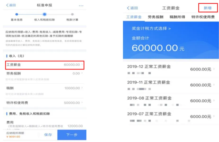 专项扣除包括居民个人按照国家规定的范围和标准缴纳的基本养老保险、基本医疗保险、失业保险等社会保险费和住房公积金等。 什么是专项附加扣除? 专项附加扣除,是指个人所得税法规定的子女教育、继续教育、大病医疗、住房贷款利息或者住房租金、赡养老人等6 项专项附加扣除。 预填数据不完整的处理方式。如您需要新增工资薪金收入,您可以在“收入和扣除界面”点击“工资薪金”,进入收入列表界面。然后,在“工资薪金”收入明细界面右上角点击“新增”按钮新增收入明细。 其中,因系统不自动带入劳务报酬所得和稿酬所得,可在对应“劳务报酬所得”列表明细界面,点击【新增】,选择通过【查询导入】或【手工填写】,完善“劳务报酬所得”和“稿酬所得”收入情况。 |