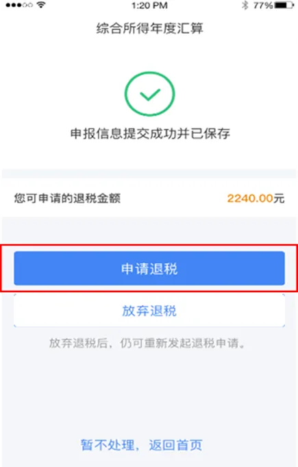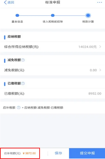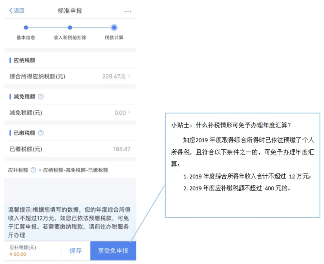 | 计算税款。数据系统将自动计算您本年度综合所得应补(退)税额。 |