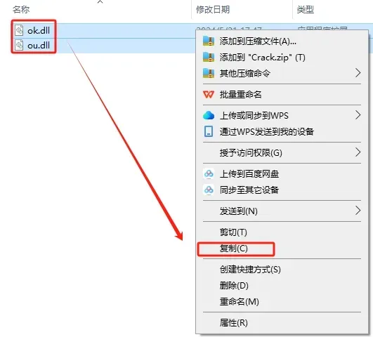 此操作必须关闭“所有杀毒软件、防火墙、Windows Defender”,否则可能会被杀毒软件误杀导致复制失败。若Crack没有该文件,需关闭杀毒软件后重新解压安装包。