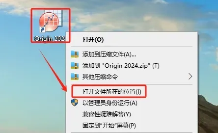 ①鼠标右键【Origin 2024】桌面图标