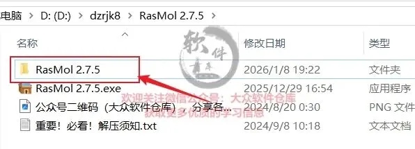 2.然后找到解压后的RasMol 2.7.5文件夹,双击打开文件。