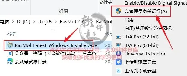 3.管理员身份运行RasMol Latest Windows Installer.exe程序;