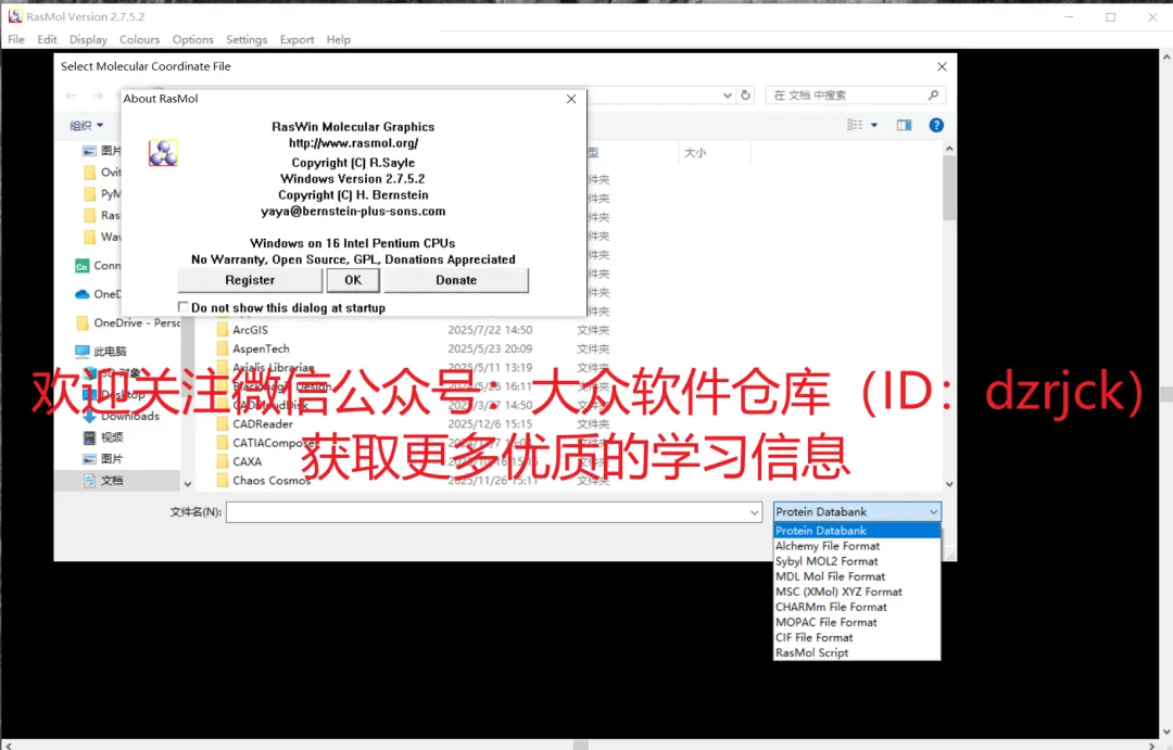 RasMol是一款在结构生物学领域广泛使用的图形显示程序,尤其适用于查看和分析蛋白质的三维结构。 它提供了图形界面以及命令行模式,两者结合使得操作更加灵活。 RasMol支持多种结构文件格式,包括PDB、NMRpdb、MOPAC、MDL MOL、MOL2、XYZ、Alchemy和CHARMM等。 用户可以通过命令行或图形界面读取这些文件。