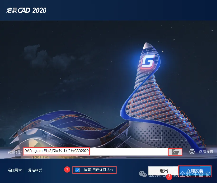 9、选择浩辰CAD 2020软件安装路径:步骤5可查看,再点击【PJ】