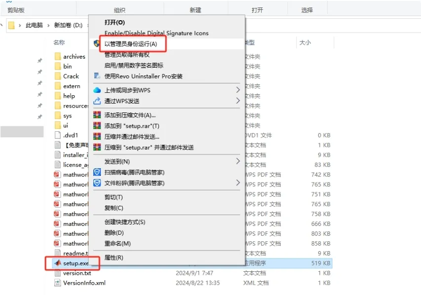 2. 鼠标右键以管理员身份运行安装程序【setup】。