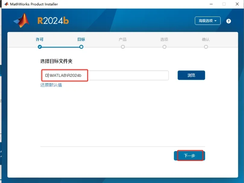 8. 选择目标文件夹,点击【浏览】更改安装位置或直接在路径上更改(注意:更改安装位置不能带有中文或特殊符号),然后点击【下一步】。