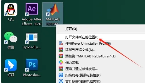 14. 在电脑桌面找到【MATLAB R2024b】软件,鼠标右键点击,选择【打开文件所在位置】进入安装目录。