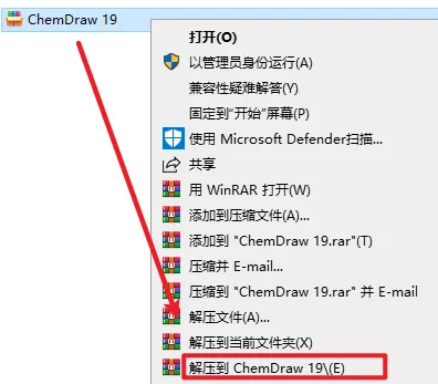 1.选中下载好的安装包,右键选择”解压到 ChemDraw 19“