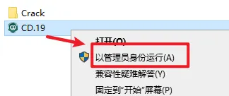 2.打开解压好的安装包,选中“CD.19”,右键选择“以管理员身份运行”