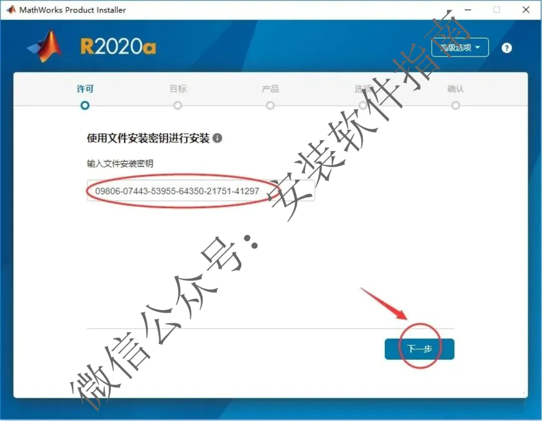7、输入文件安装密钥09806-07443-53955-21751-41291,然后点下一步