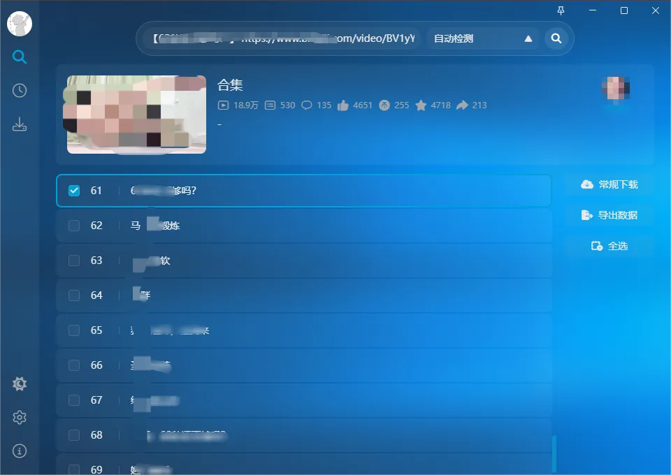 复制地址后,软件会自动读取链接,并展示可以下载的视频。