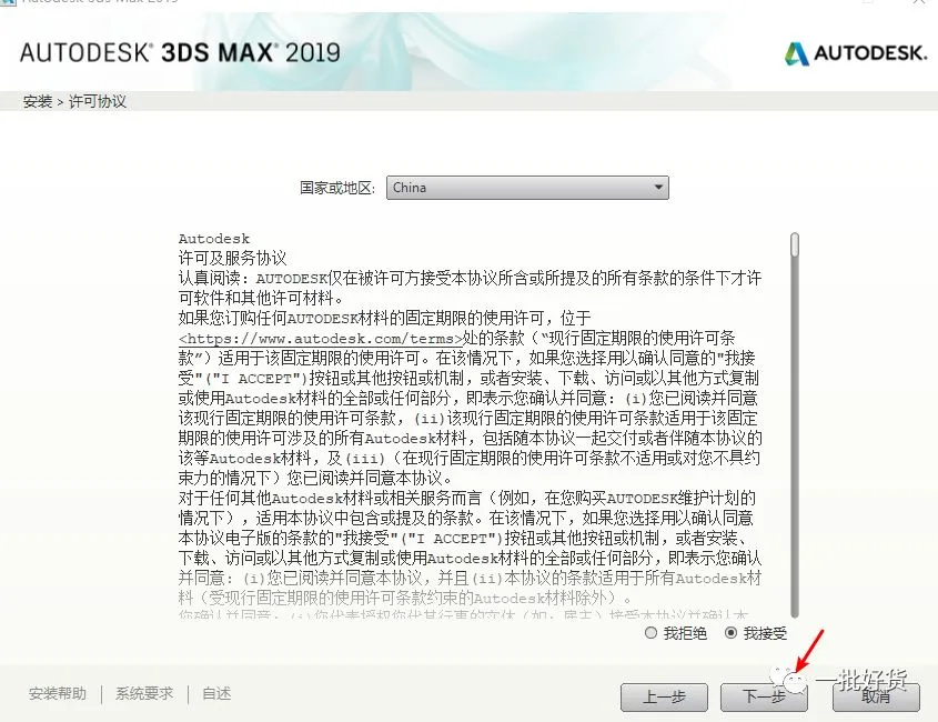 4. 选择【我接受】,点击下一步