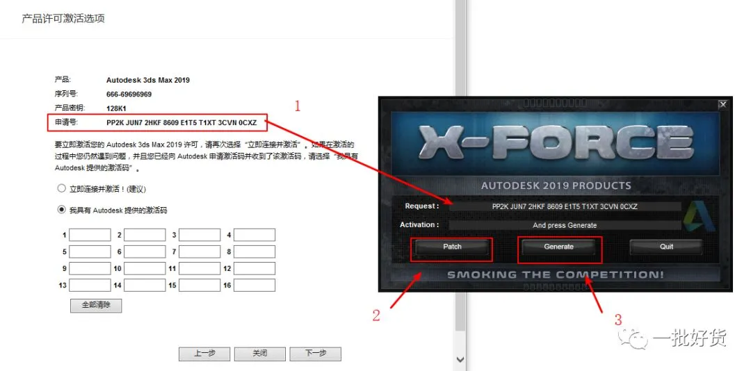 20. 在出现的界面中把激活界面的序列号复制到注册机【Request】中,点击【Patch】,再点击【Generate】