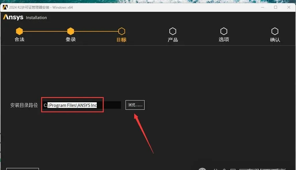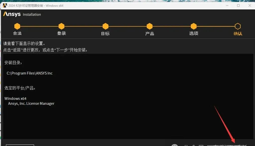 7、选择许可证管理器安装路径,默认路径是安装C盘,按照自己需要进行更改,要记住安装位置后面会用到。