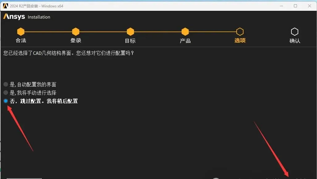 30、选择【否,跳过配置】。然后继续进行下一步。