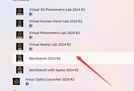 43、左下角开始菜单种找到ANSYS 2024R2软件后打开。