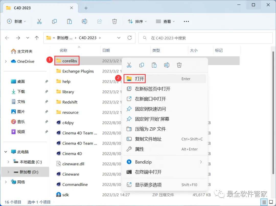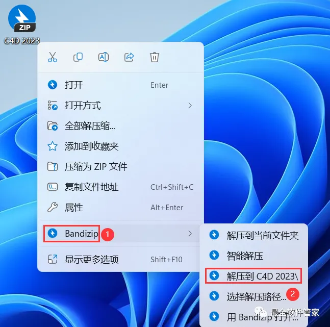 1、下载C4D 2023软件安装包到电脑上,右键选择【解压到C4D 2023\】