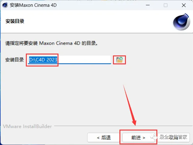 5、软件默认安装在C盘,可自定义更改软件安装位置,这里小编选择安装在D盘;点击【前进】