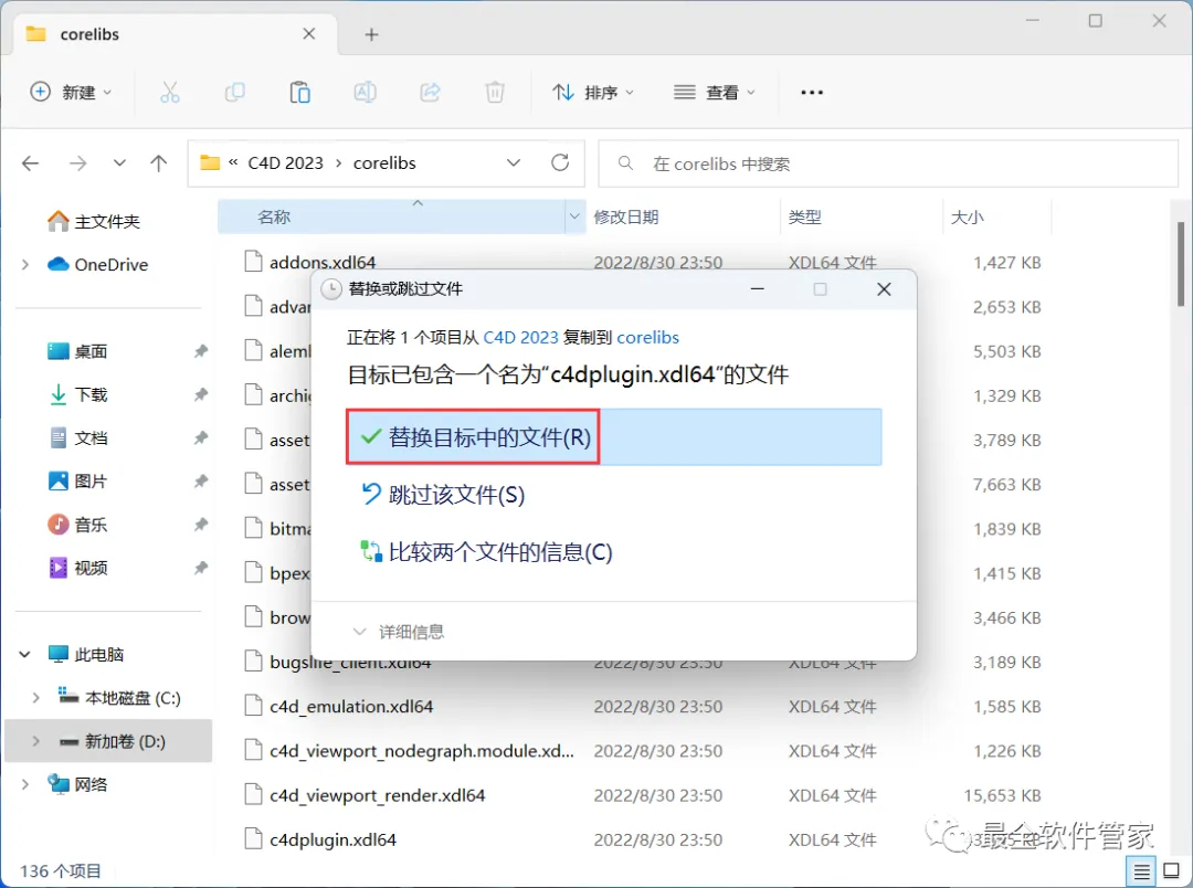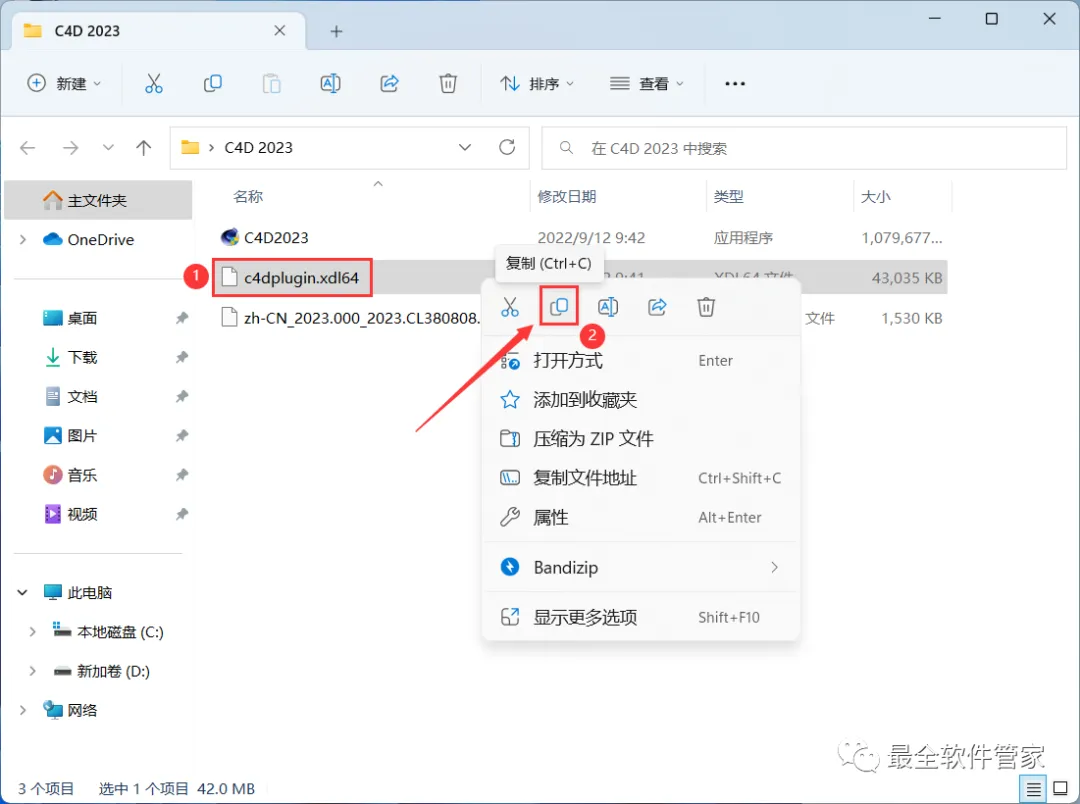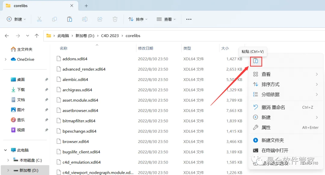 10、回到C4D 2023文件夹,找到【c4dplugin.xdl64】文件,右键点击【复制按钮】