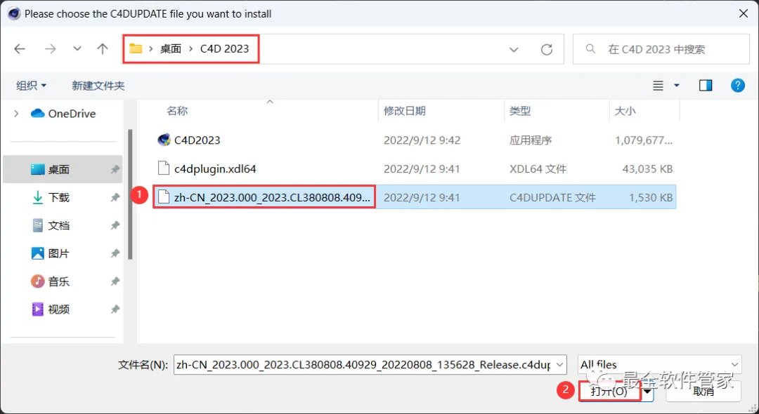 18、选中C4D 2023文件夹下的【zh-CH_2023语言包】文件,再点击【打开】