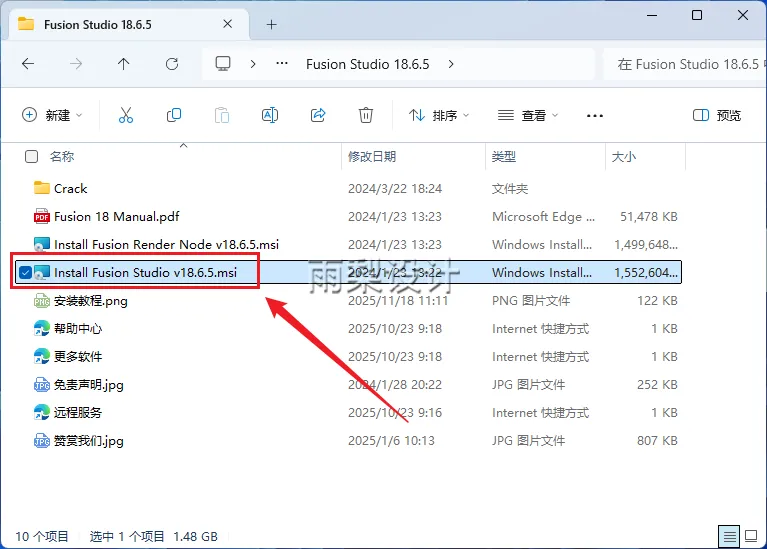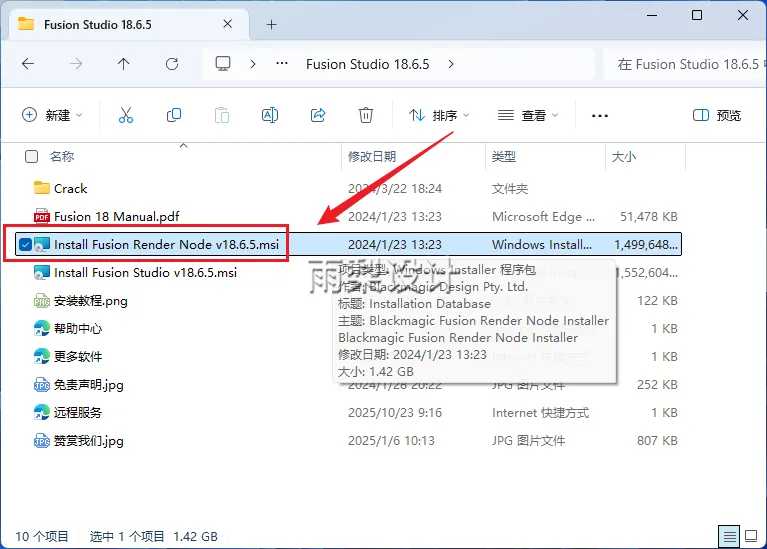 8.返回安装包;双击【Install Fusion Render Node v18.6.5.msi】