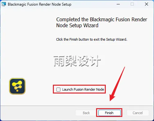 13.取消勾选【Launch Fusion Render Node】,点击【Finish】