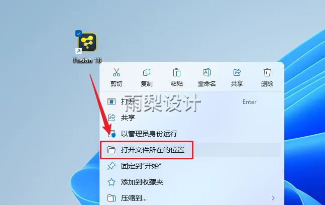 16.右键【Fusion 18】选择【打开文件所在的位置】