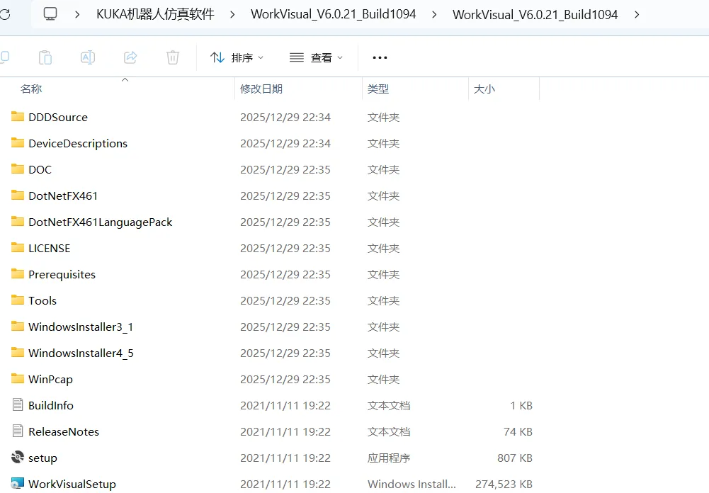2.3,打开解压后的文件夹,双击打开【KUKA机器人仿真软件】->【WorkVisual_V6.0.21_Build1094】->【WorkVisual_V6.0.21_Build1094】文件夹。