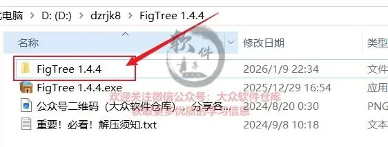 2.然后找到解压后的FigTree 1.4.4文件夹,双击打开文件。