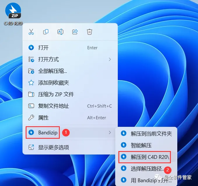 1、下载C4D R20软件安装包到电脑上,右键选择【解压到C4D R20\】
